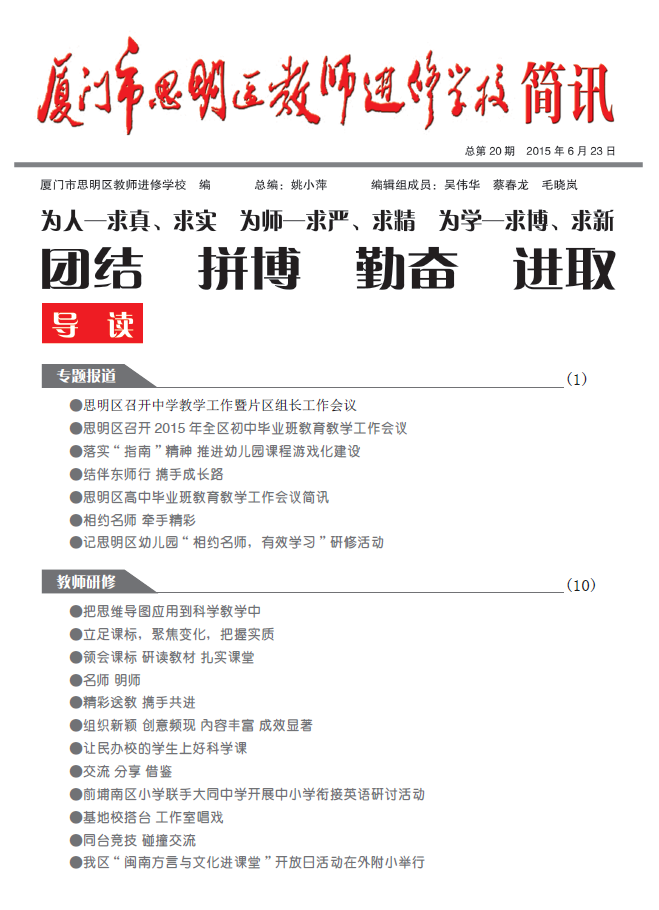 【报刊名称】:思明区教师进修学校简讯… 【作 者】:思明教育 【来 源】:思明教育 【发表时间】:2018-04-25 17:38