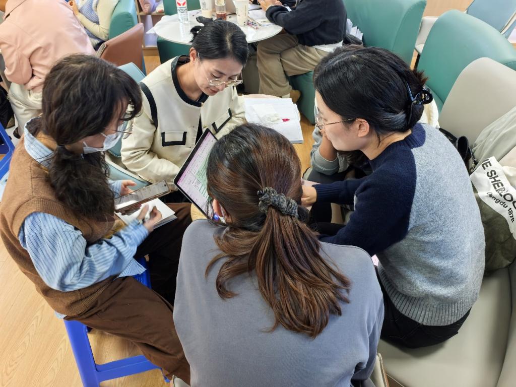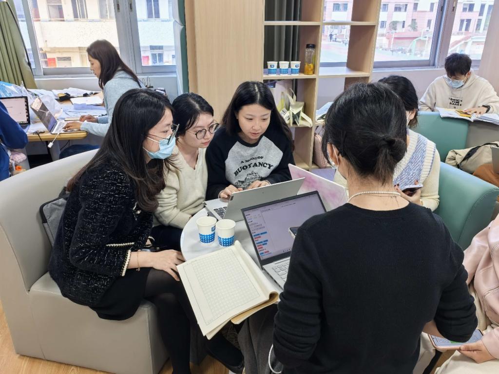 在分组研讨环节,各小组围绕教学改进展开深入讨论。第三小组聚焦“课堂肯定与激励”策略,构建了完整的证据链;第一、第二小组则围绕“鼓励学生提问提升思维品质”的改进成效展开论证,从政策要求、学术研究、教学经验三个维度搜集证据,构建实践路径。