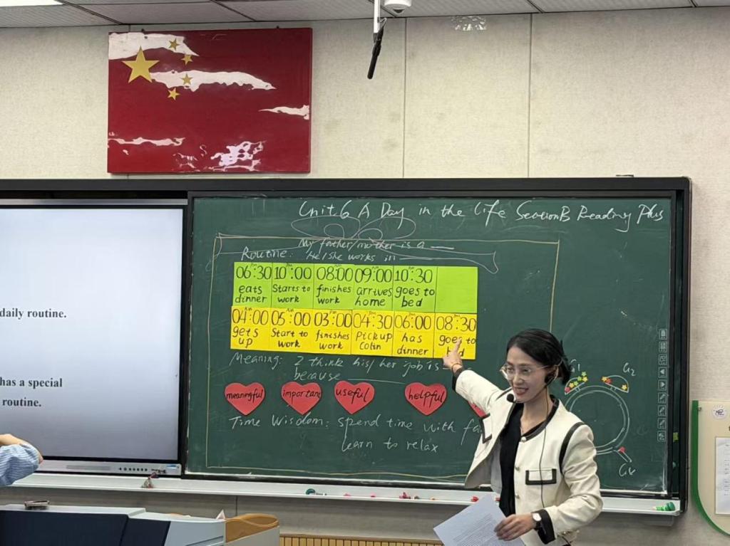 华侨中学谢华萍老师在七年级《Unit6 A Day in the Life Reading Plus》阅读课中,通过分享自身一日活动拉近与学生的距离,进而引导学生结合精读与快读技巧,梳理两位家长的一日活动细节,还以问题链启发学生思考工作价值、生活智慧,用语言分享家庭经历,在实践中巩固阅读技能。