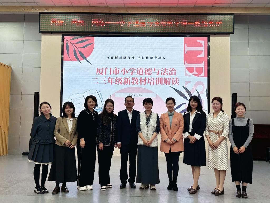 3月20日,由厦门市教育科学研究院主办、思明区教师进修学校承办的小学道德与法治新教材培训活动,在厦门市滨北小学举行。来自全市各直属校、各区教师代表及思明区各公民办小学的道德与法治教师齐聚一堂,共赴一场思想与实践交融的教学盛宴。