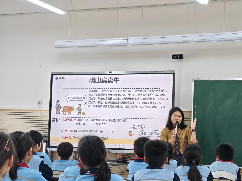 开禾小学况紫君老师《诚实与说谎》一课,以“诚实小侦探”为主线,串联“发现诚实—感受价值—学会践行”三大环节,通过明山宾卖牛、考试作弊等案例,引导学生从个人、集体、社会维度理解诚信价值,筑牢无人监督下的诚实底线,完成道德认知到实践的有效落地。