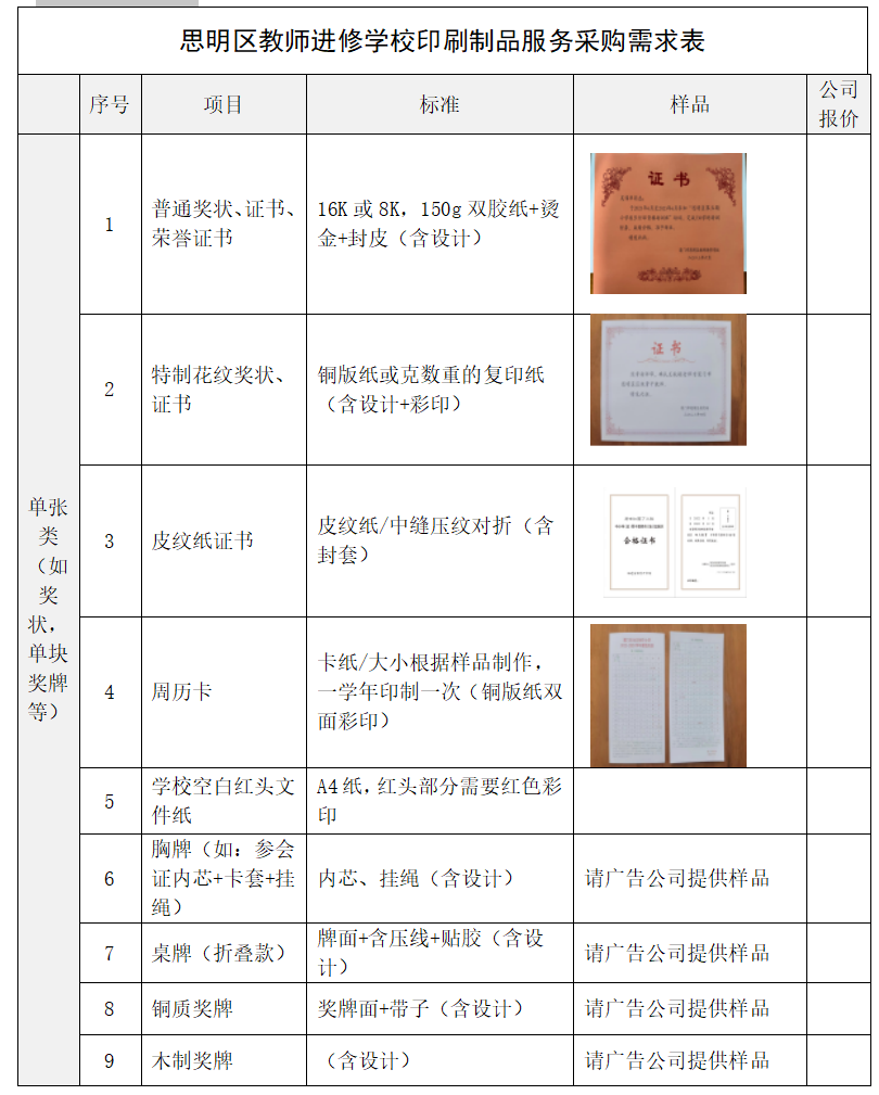 2023-2024学年思明区教师进修学校印刷制品服务采购需求公告