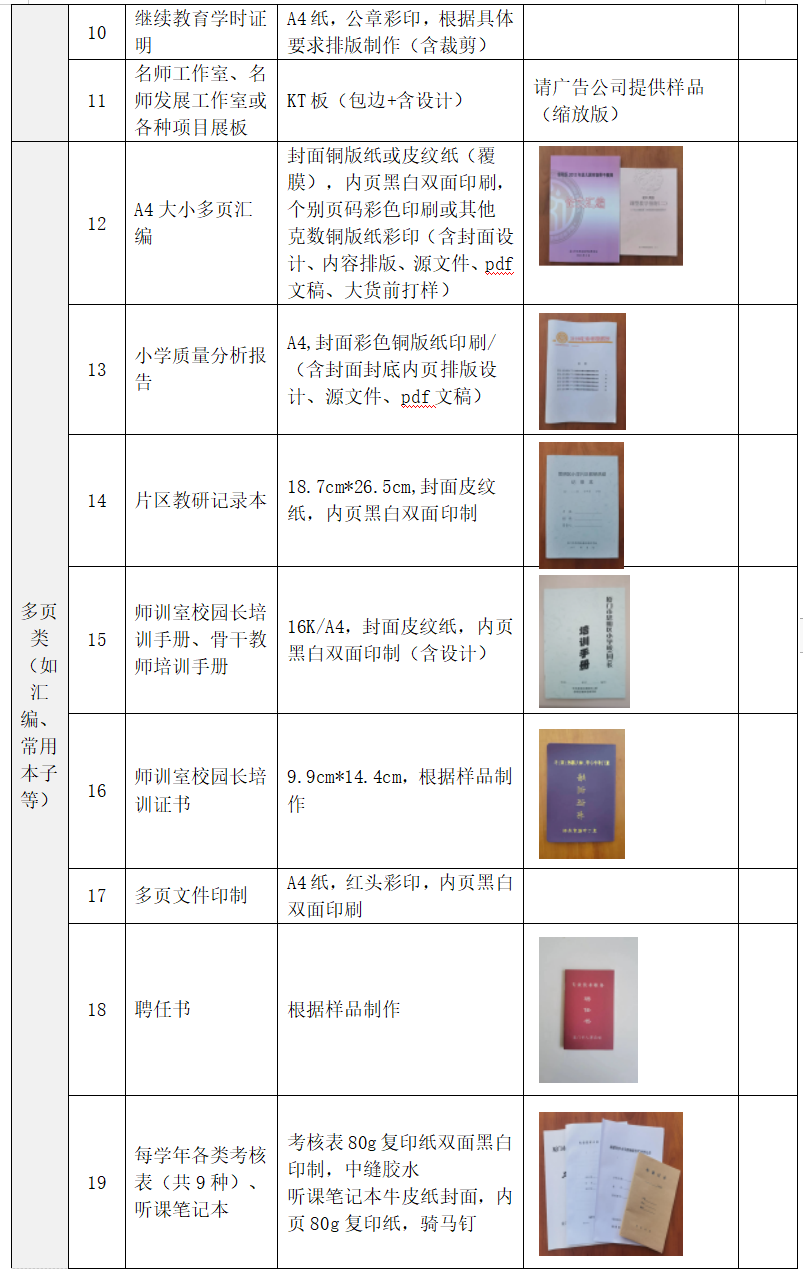 教师进修学校印刷制品服务采购
