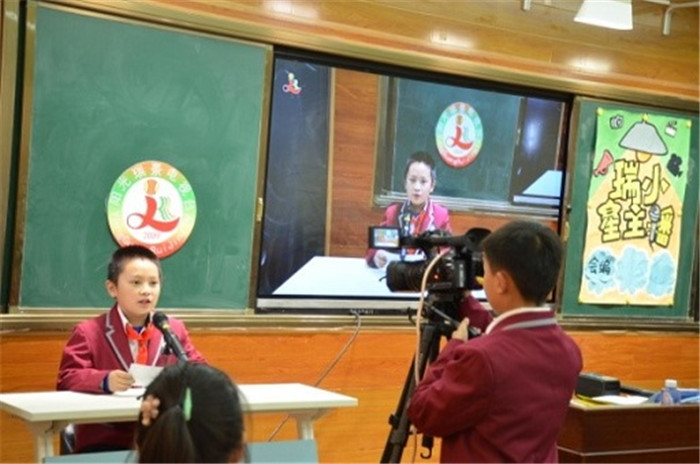 活动分为课堂展示、主题发言、分组研讨及专家点评四个环节。首先,课堂展示环节由林静婷老师和林洋洋老师提供了两节校本课程课堂的研讨资源。林静婷老师的《编导请就位》一课,以培育学生的设计思维为着力点,围绕校园电视台节目征集大赛引导学生展开瑞小阳光电视台的节目策划活动。林洋洋老师的《瑞小“星”主播》一课,围绕学生新闻表达能力的生长出发,以瑞小阳光电视台招募“星”主播为契机,引导学生基于校园生活,触发学生“会编、会采、会播”的媒介素养发展。其次,瑞景小学谢凌鹏老师做了题为《媒介素养课程的规划与建设》的主题发言。围绕着“校本课程的整体规划”、“校园媒体育人体系”、“教育途径的融入形式”、“延展融通、展示校园特色”等方面介绍了瑞景小学媒介素养课程建设的过程与发展。再次,围绕所呈现的研讨资源,与会教师分成五个组,进行了多维度的讨论。每个小组以阶梯式导图、发散式导图、是鱼骨架式导图等方式呈现了学习收获,并派一人做代表进行发言。最后,由与会专家进行点评指导。厦门大学的洪志忠老师认为该项目体现了“抓大势”、“抓资源”、“抓整体”、“抓特色”,提出了“课程体系与学校育人目标关系”、“媒介素养的具体内容”、“学生能力发展的迁移”、“课程评价”等几点思考。市教科院郭淑雅老师肯定了项目的研究落实,对能够作用在课堂、学校搭建能力发展支架促进学生成长给与肯定,也对后续进一步提升提出了宝贵建议。市教科院原教研员苏文木老师肯定了项目的时代性,并指出应有更宏观、更证据、更系统的实践路径。