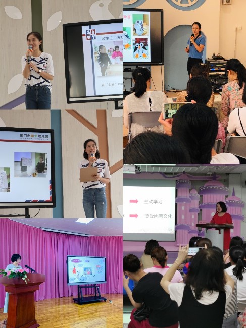 随后,第十幼儿园的姚莉娜园长、仙阁幼儿园的陈芝园长、科技幼儿园的余喜兰副园长、市实验幼儿园的林远龄园长就课程领导力进行了精彩汇报。陈婷婷、刘晓云、邱丽云、颜逸琦、张丹、陈秀丽、钟萍萍七位教师呈现了五个精彩的课程故事——《“形影不离”玩得欢》、《小木偶,好朋友》、《哇,布袋偶!》、《“纸”想和你玩》、《有趣的杖头木偶》。故事中,幼儿积极专注的探究、教师对幼儿经验的梳理与提升、恰到好处的支持策略赢得了现场教师的阵阵掌声。