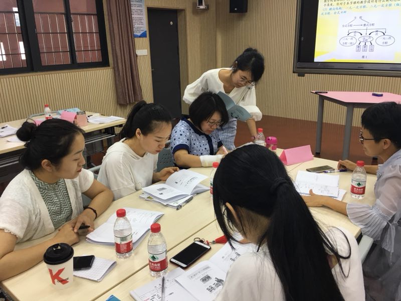 主持人郭小霞老师以七年级教材中“一元一次方程”为“基于认知结构的单元起始课”的案例,组织教师参与讨论:从学生的认知结构出发,该如何设计这节课。在每组教师热烈讨论、各抒己见的基础上,郭老师立足于“注重数学整体性,提高系统思维水平”,总结了本节课的设计想法与整体思路。