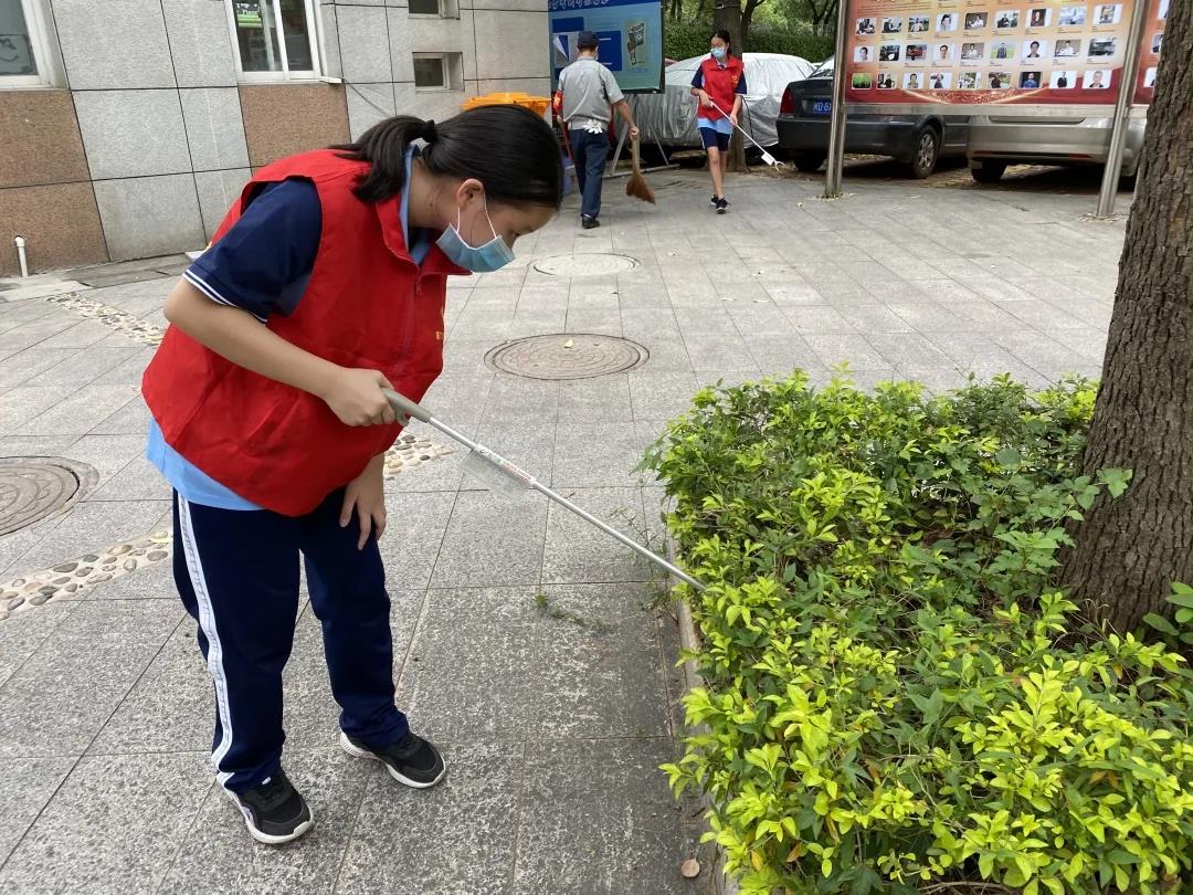 在医务室谢华华老师的指导下,志愿者们进行了明确的分工,主要清洁区域有芬芳园,操场,校门口及教学楼内的应急设施。