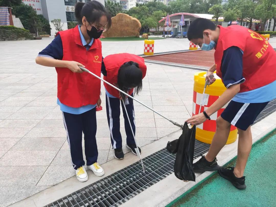 为迎接即将到来的2020年全国文明城市评比检查,同时美化校园环境,厦门市第九中学初二年学生会干部以及十余名同学积极响应校团委的号召,组成了志愿者小队,在德育处洪明华主任、医务室谢华华老师的带领下,对校园进行清洁,为保持整洁的校园环境贡献了自己的一份力量。