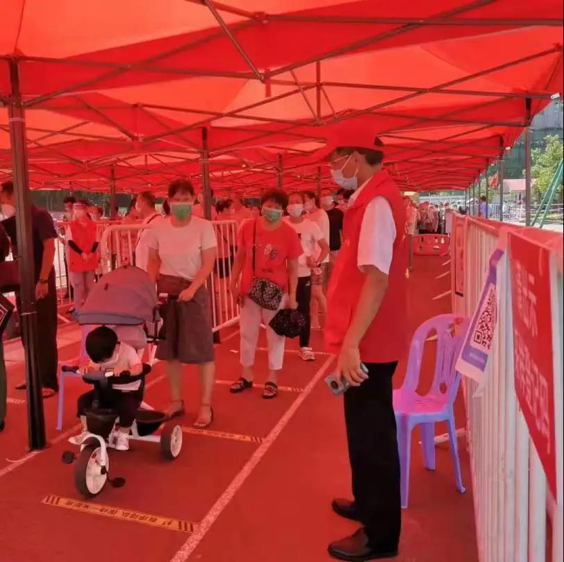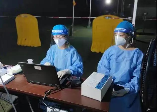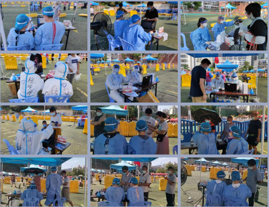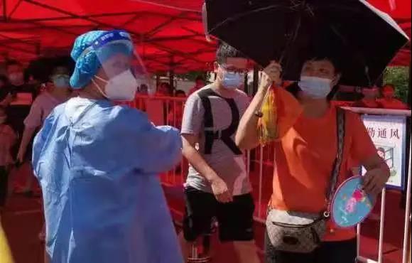 三十多度的高温下,九中操场如一个巨大的蒸笼。老师们穿着严实的隔离衣,或精神抖擞地维护秩序、耐心引导,或聚精会神地将排队等候采样的市民信息一个一个准确无误地录入平台。