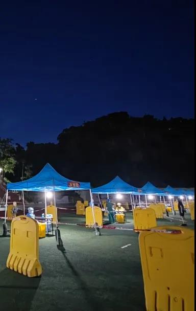 这场“战斗”从白天持续到了夜幕降临,教工志愿者们和医护人员坚持站好最后一班岗,他们没有停止手上的工作,协调、引导、录入……皎洁的月光、朦胧的夜色笼罩着他们忙碌的身影。