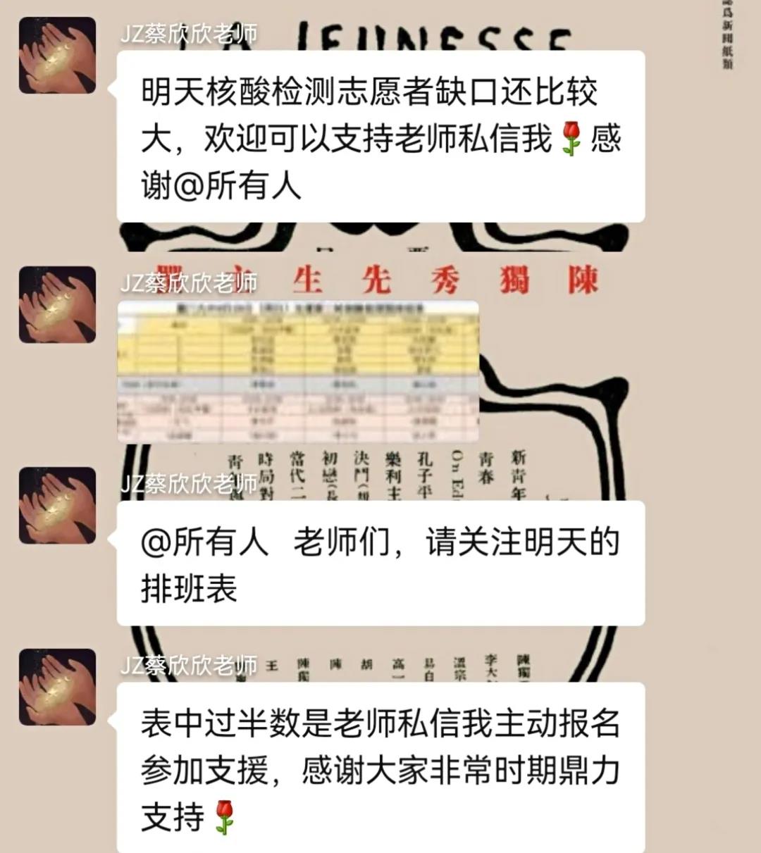 这是一份来自组织的凝聚力,全体教职工彼此信任,互相鼓励,万众一心,共克时艰。