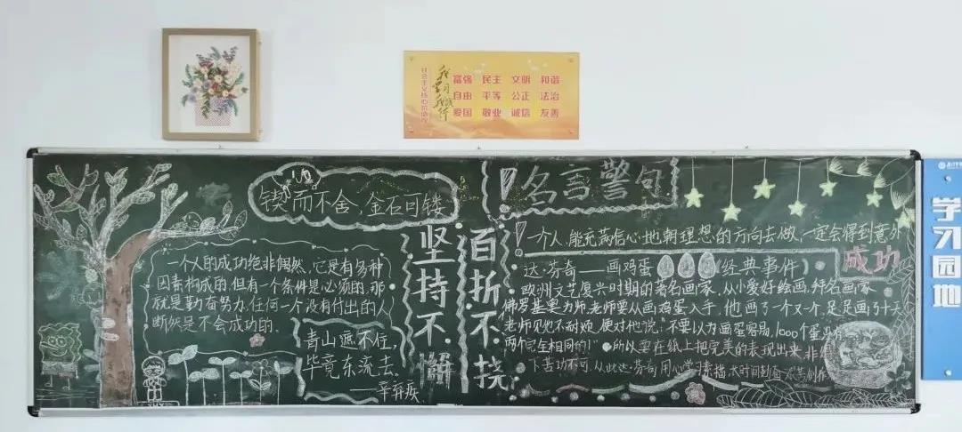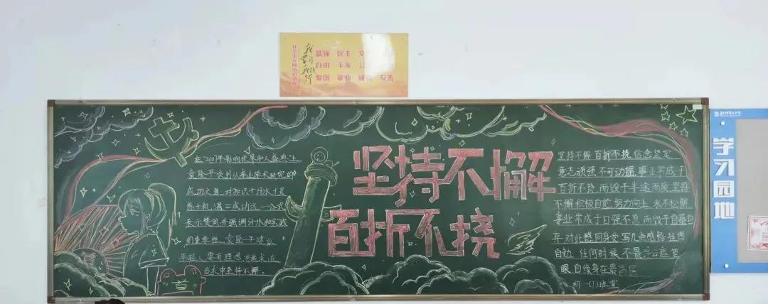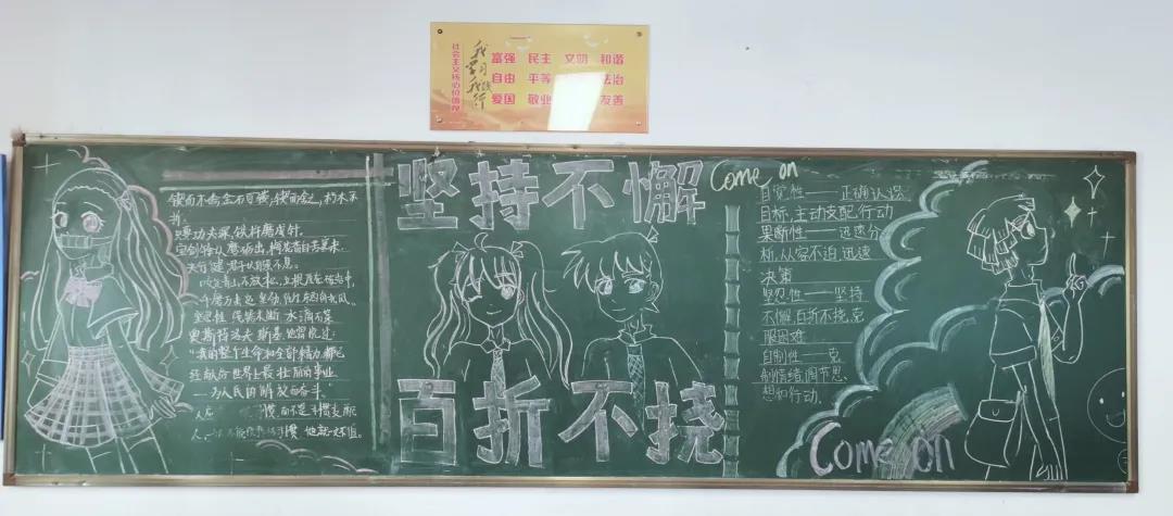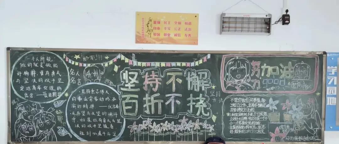 1.为了更好地宣传活动主题,我校在初一年开展了以“坚持不懈,百折不挠”为主题的黑板报制作、评比活动,各班级积极参与,活动氛围浓厚,有力地宣传了心理健康教育的相关知识。