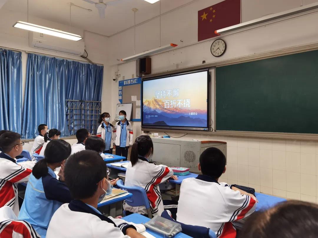 2.为了让学生积极思考,勇于创新,我校在初二年各班开展了以“坚持不懈,百折不挠”为主题的班会课活动,各班由师生共同组织活动课,学生参与度高,活动效果良好。