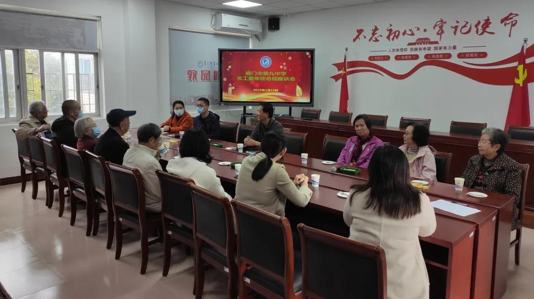 在新春佳节到来之际,1月10日下午,厦门九中在勤奋楼四楼会议室召开一年一度的关工委年终总结座谈会。校党总支书记、校长洪秋和,副校长邱东华、张亚玲,及中层干部出席了本次会议,共有7名离退休教师代表参加了座谈会。