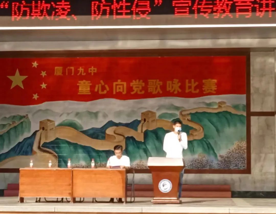 4月11日下午,厦门市第九中学法律顾问的两位老师为初一、初二年的学生带来了“防欺凌,防性侵”的一场专题讲座,讲座由陈俊龙老师主持。