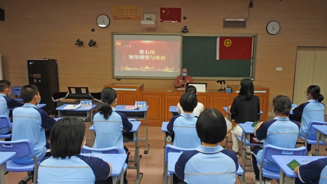 校党总支青年委员李少凡向新团员们深情寄语。李少凡老师对新入团的同学们致以诚挚的祝贺,并勉励团员们要遵守团的章程,履行团的义务,团旗下的宣誓绝不能只挂在嘴上,⽽应该把它作为指导自己思想、规范自身行为的座右铭,真正做⼀个有教养的中学生,做⼀个有益于社会的好公民,做⼀名合格的共青团员!