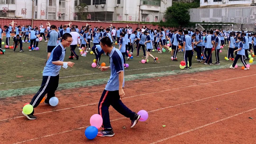 看着同学们准备就位了,郑老师一声令下,“大战”帷幕拉开,绿茵场上瞬时迸发出阵阵欢叫声,15岁的少年们你追我赶,争相踩碎对方脚踝上绑着的气球,也将中考前各式各样的压力踩低、踩碎,带着释放后的轻松快感迎向最后的冲刺时光。