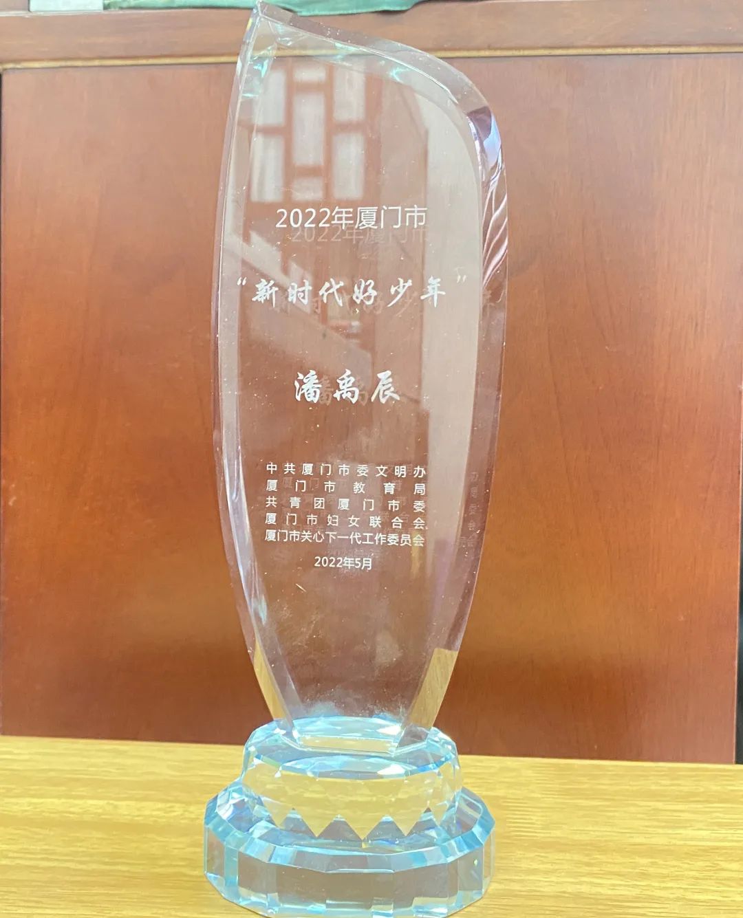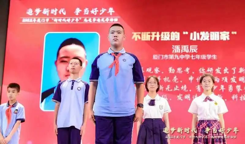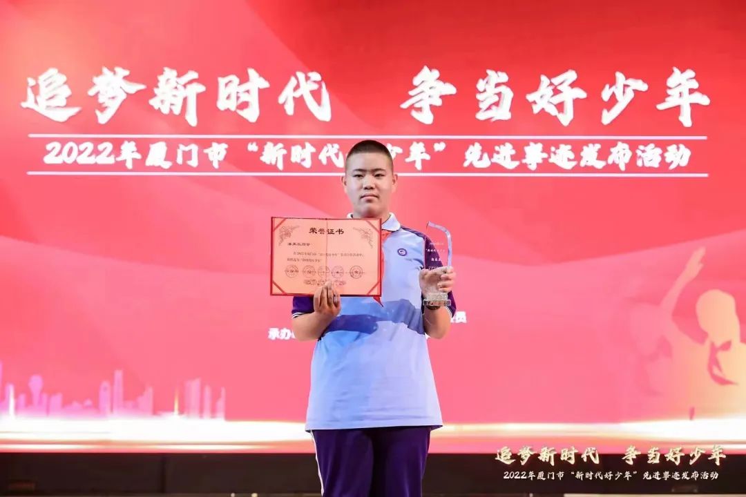 逐梦新时代,当看少年强。近日,厦门市委文明办、市教育局、团市委、市妇联、市关工委开展的2022年厦门市“新时代好少年”评选活动中,我校初一(8)班潘禹辰同学荣获2022年厦门市“新时代好少年”荣誉称号。