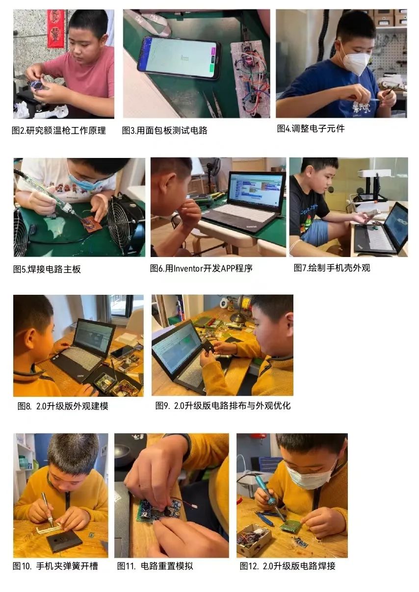 2020年8月,他从拆解额温枪开始研究测温仪的工作原理,然后制定测温手机壳的工作流程,之后按照计划逐步学习电路、电子元件、编程、3D建模等知识,并应用到研发中——这千里之行里的每一步的艰难,都在不断刷新他的认知。但潘禹辰知道,克服困难才能收获更大的成长,所以他发挥出一个小学生所具有的最大热情与智慧,一步一个脚印将项目往前推进。
