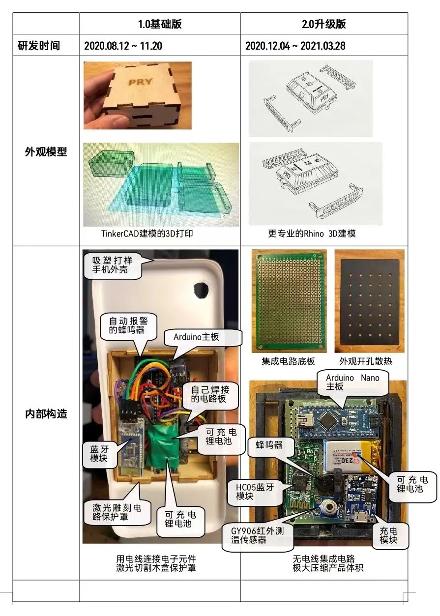 借着基础版研发,潘禹辰参加了“厦门市第36届青少年科技创新大赛”,并获得了一等奖。评委老师的肯定让他有了进一步研发的动力。又8个月后,2.0版本的手机壳问世,在产品外观、使用方式、APP程序等方面都进行了升级。(产品迭代过程详见附件2)