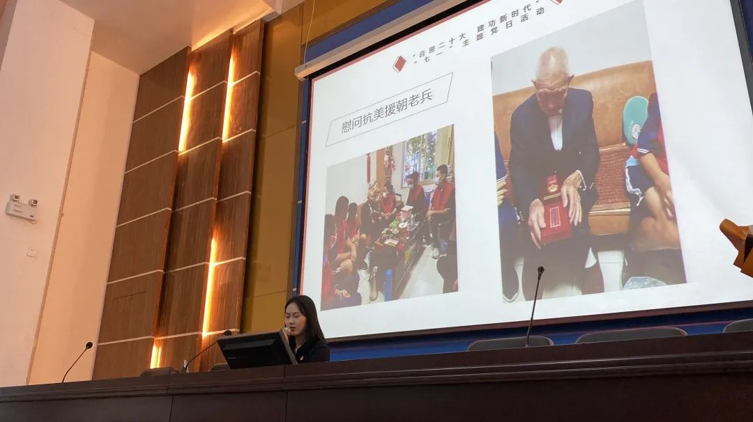 紧接着,校团委书记及三个党支部的书记们先后分享了他们走访抗美援朝老兵和困难群众的入户日志,讲述与老兵、群众谈心声交朋友解难题的心路历程,总结在“近邻”活动、“爱心结对”慰问中密切党群关系和为群众办实事的经验做法。