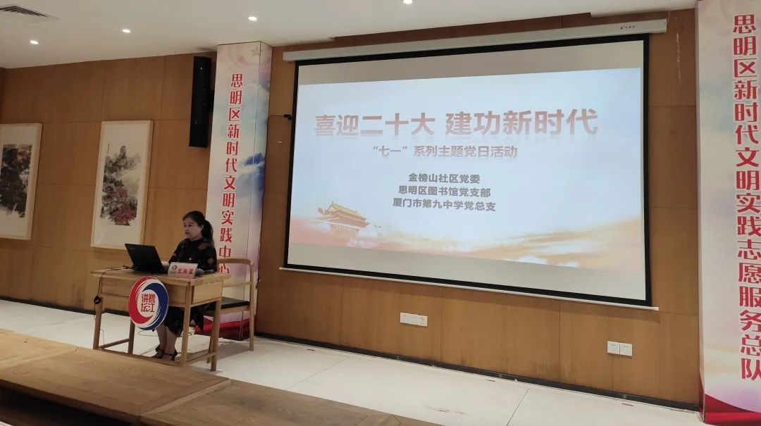 6月29日,九中党总支组织党员教师前往金榜书院,参加金榜山社区的党日活动,聆听由厦门华夏学院副校长、副教授王东星老师开讲的主题党课《构建人类命运共同体》。