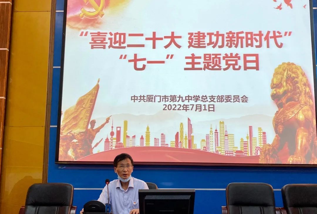 为庆祝中国共产党成立101周年,推动党史学习教育常态化长效化,持续巩固拓展党史学习教育成果,进一步引导党员教师强信念、践使命、勇担当、跟党走。7月1日,厦门九中党总支组织开展“喜迎二十大 建功新时代”“七一”主题党日活动,激励全体党员教师发挥先锋模范作用,走好“赶考路”,奋进新征程,建功新时代。