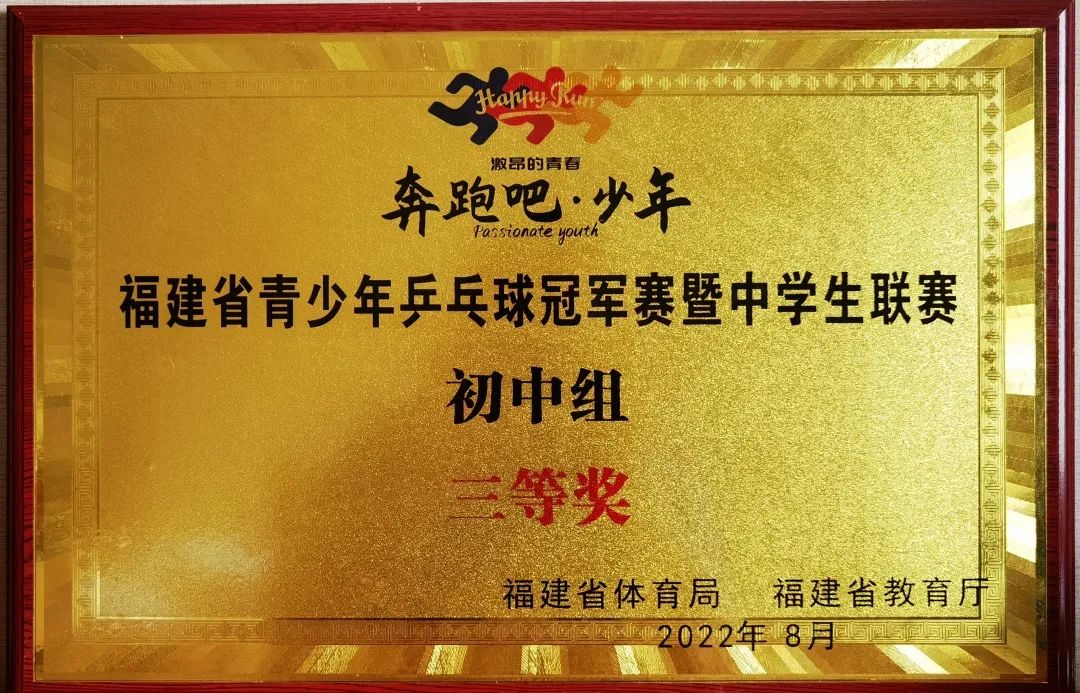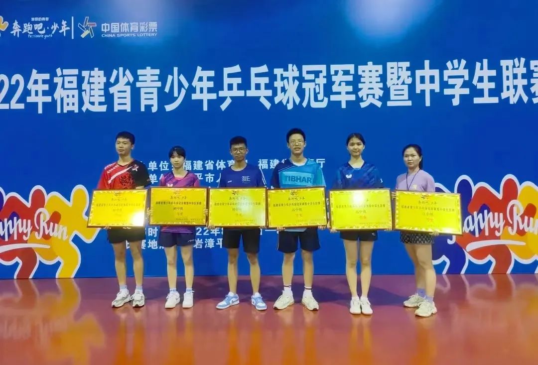 由福建省体育局、福建省教育厅举办,漳平市文化体育和旅游局、漳平市教育局共同协办的2022年福建省青少年乒乓球冠军赛暨中学生联赛,于8月15日上午在漳平市体育馆落下帷幕。本次比赛分初中组和高中组,设男单、女单、男双、女双和混双五个项目。来自全省各设区市、平潭综合实验区的53所中学147名运动员参加本次比赛。