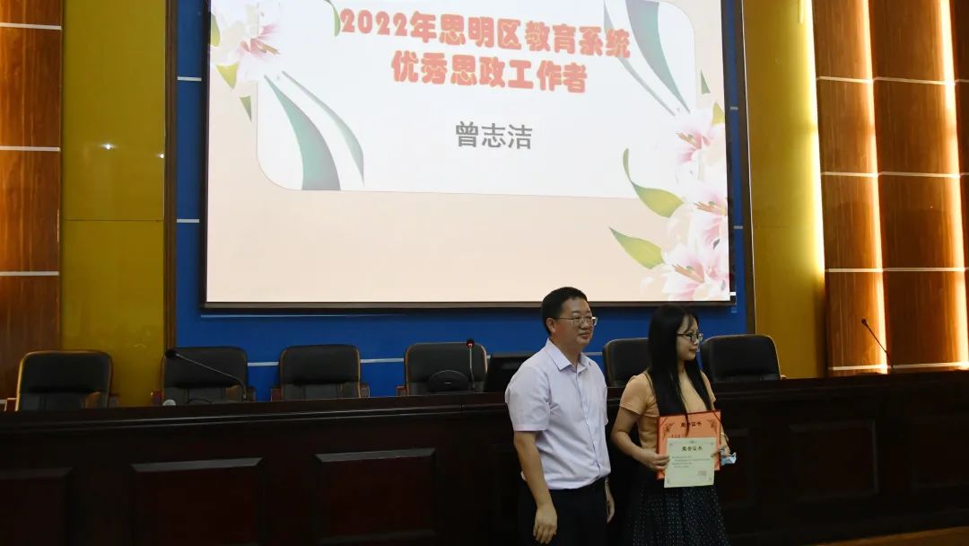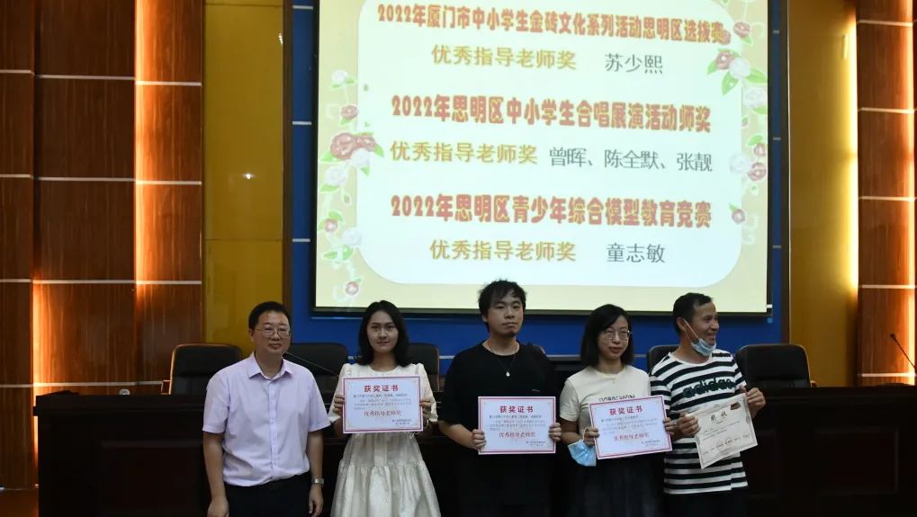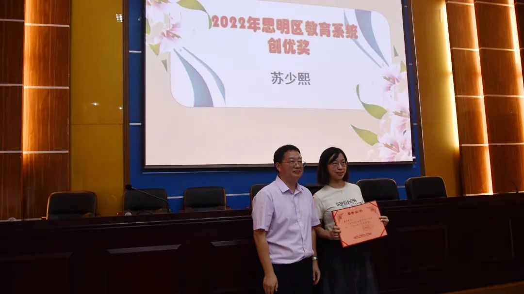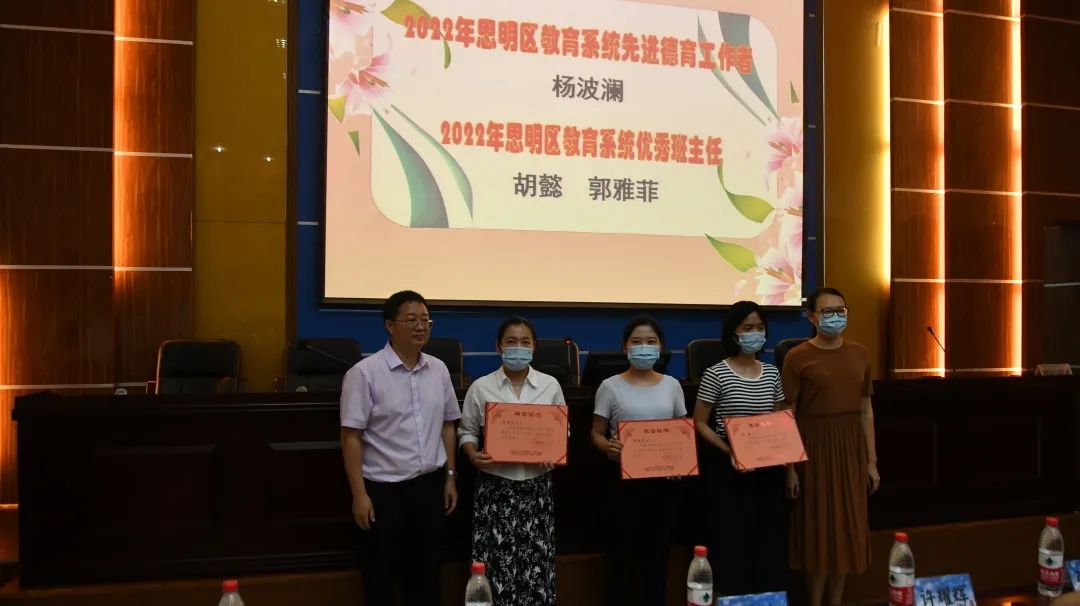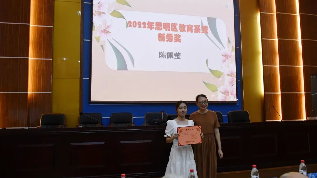 随后,大会还为2022年思明区教育系统先进个人、各类竞赛优秀指导老师奖、2021—2022学年校级青年教师教学基本功岗位练兵个人奖项以及获得校优秀教案的老师进行颁奖。