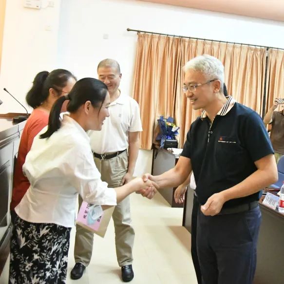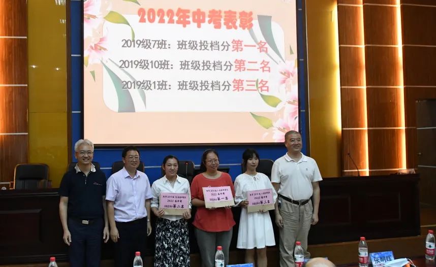 紧接着,84届校友、厦门市第九中学教育基金会暨校友联谊会创会会长许培新先生,79届校友、厦门市第九中学教育基金会理事长张明辉先生以及许耀辉校长,为在2022届中考中取得突出成绩的三个班级的教师团队颁发了奖励金。