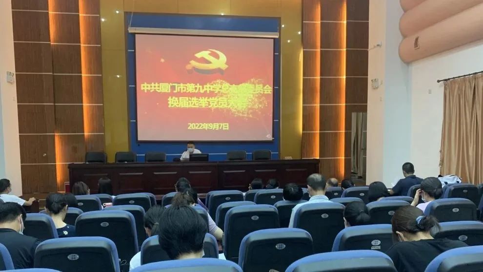 9月7日,九中党总支换届选举党员大会在求实楼召开。大会选举产生新一届委员会书记许耀辉同志,委员张亚玲同志、蔡欣欣同志、李少凡同志和林榕同志。