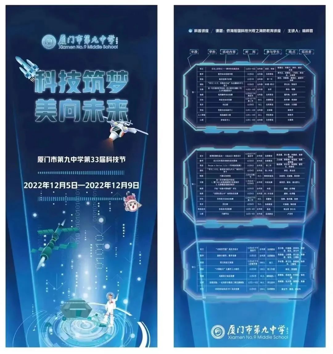 12月5日—9日,九中依托各学科备课组,举办主题为“科技筑梦 美向未来”的第33届校园科技节活动。