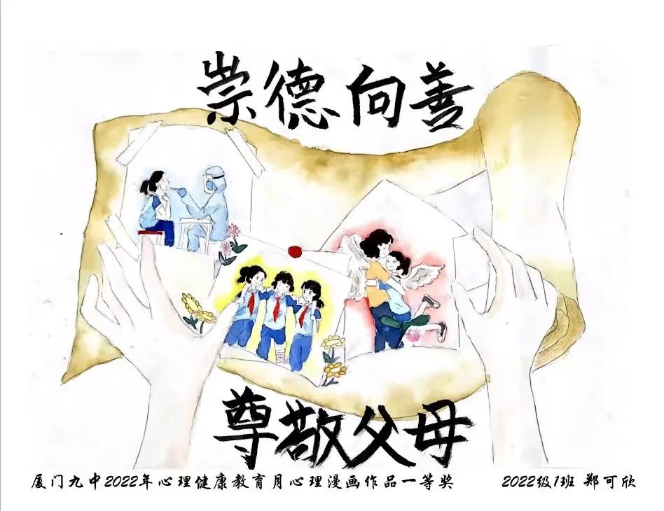 今年,九中以“崇德向善,尊敬父母”为主题开展了“心理健康教育月”系列活动,组织学生参与板报展、主题班会、心理漫画等丰富有趣的活动,取得较好的教育效果。