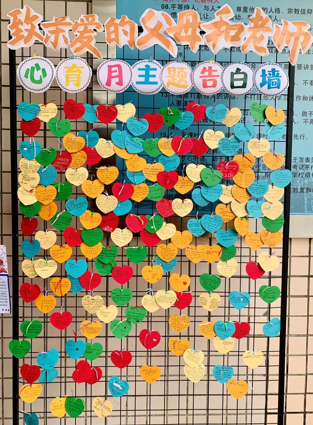 除了校园心理漫画、心理手抄报、主题板报展评活动外,今年心育月我们还开展了富有温情的“致我亲爱的父母和老师”主题告白墙活动,进一步营造“崇德向善,尊敬父母”的良好气氛.