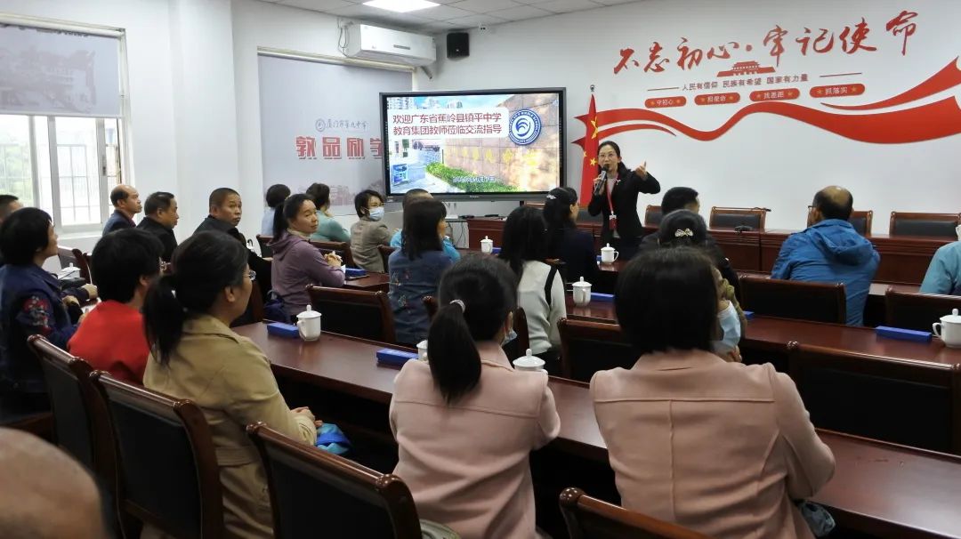 春日书香溢,清风迎客来。4月7日上午,广东省蕉岭县镇平中学教育集团一行32人在古红梅副校长、林柳东主任带领下到厦门九中开展交流、学习。