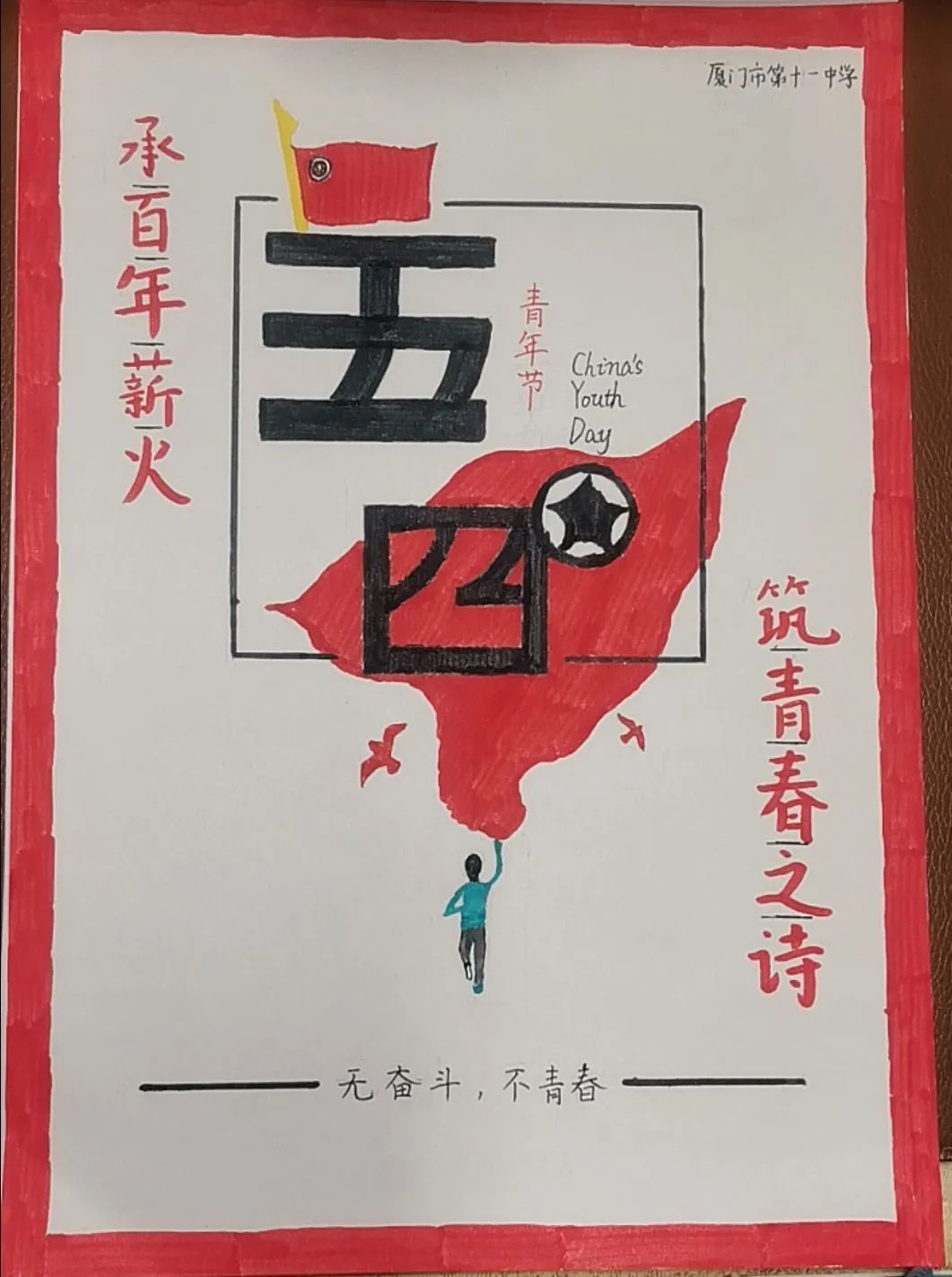 五四青年节连接共青团百年华诞,这份光荣属于全体青年。十一学子用色彩与创意点燃心中的青春之火,在他们的作品中体现着五四精神与共青团荣耀的传承。