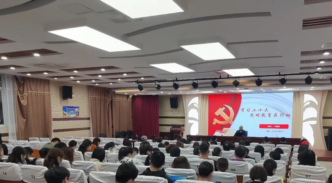 为深入学习贯彻党的二十大精神,切实把全校教职工的思想和行动统一到会议精神上来,近日我校党总支书记、校长林国斌为全校教职工作党的二十大精神专题宣讲。