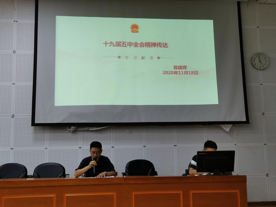 最后,我校副书记、副校长翁建辉老师组织大家学习十九届五中全会公报内容,了解全会概况。党的十九届五中全会重点研究制定“十四五”规划和2035年远景目标建议,为全面建设社会主义现代化国家开好局、起好步,具有十分重要的意义。