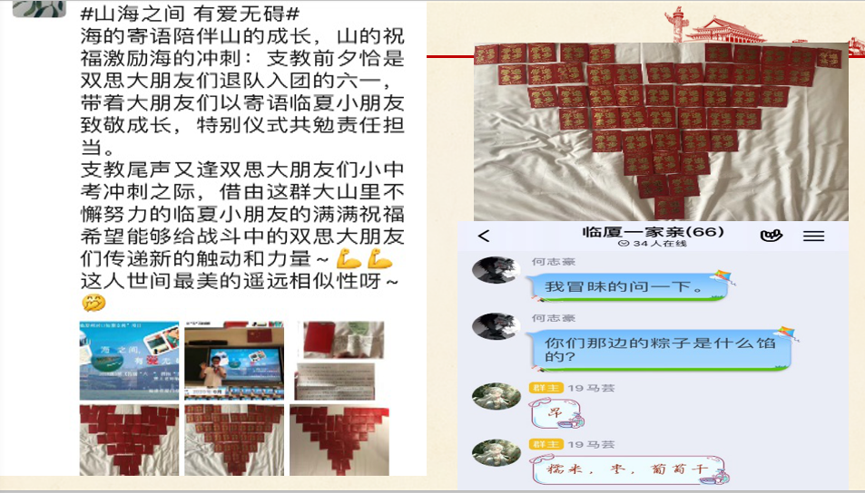 王丽薇老师从亲历者的感恩、践行者的感触和使命者的感召三个角度分享和宣讲习近平总书记“既要扶智也要扶志,既要输血更要造血”的扶贫理念,用真实的故事传递真实的力量,是“绘本故事”,激发思维;是“发现自己”,向上向善;是“山海之间”,有爱无碍。