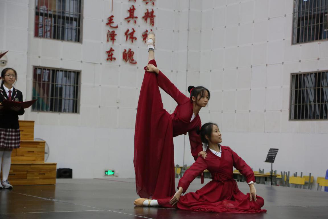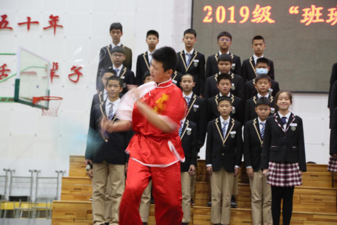 爱国情怀是什么?他是胸怀天下、志存高远的理想;他是壮志满怀、从容笃定的担当;他更是奋勇向上、百折不饶的坚韧。伴随着一首首耳熟能详的古诗词,历史在眼前重现,初二6班的同学们向我们诠释了最美的家国情怀。铿锵有力的朗诵和有气势的武术表演,荡气回肠。