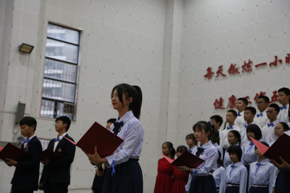 炎黄子孙,精神抖擞;莘莘学子,意气风发;黑发少年,风华正茂;龙的传人,唱响校园。中国话中孕育的是源远流长的中国文化。用动人的声音,初二10班用最朴素、真切的中国话,激起同学们的爱国之情,也赞颂了我们伟大的祖国。