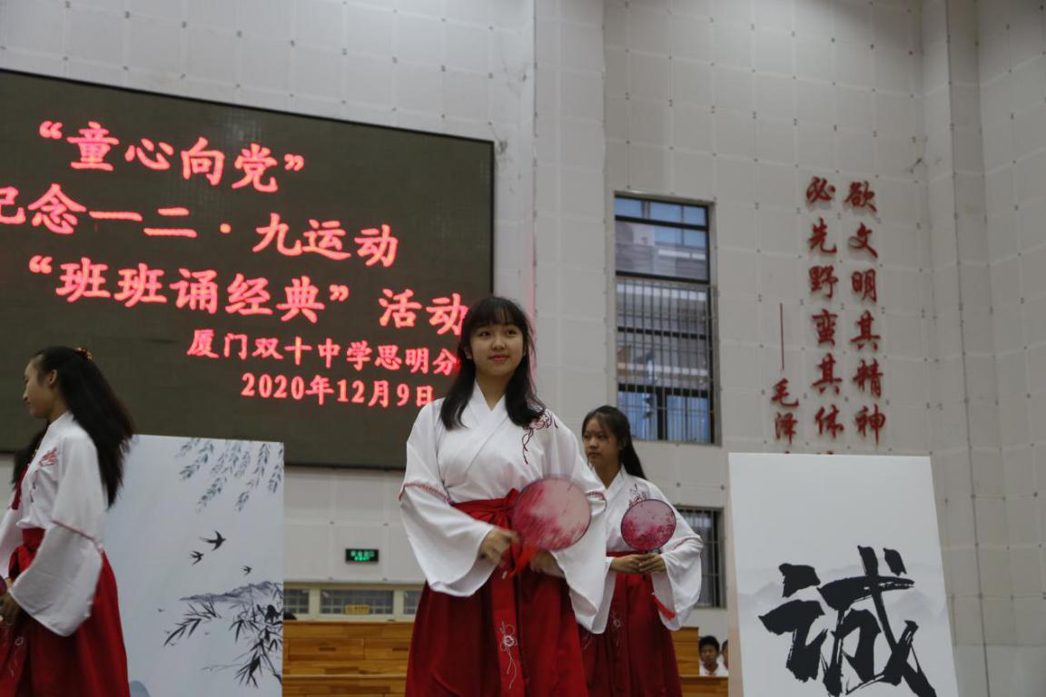 为纪念“一·二九”运动,我校举行2019级“童心向党·班班诵经典”活动。本次活动初二年段各班以朗诵的形式,向我们展示了青春少年意气风发,为国家作奉献的决心。