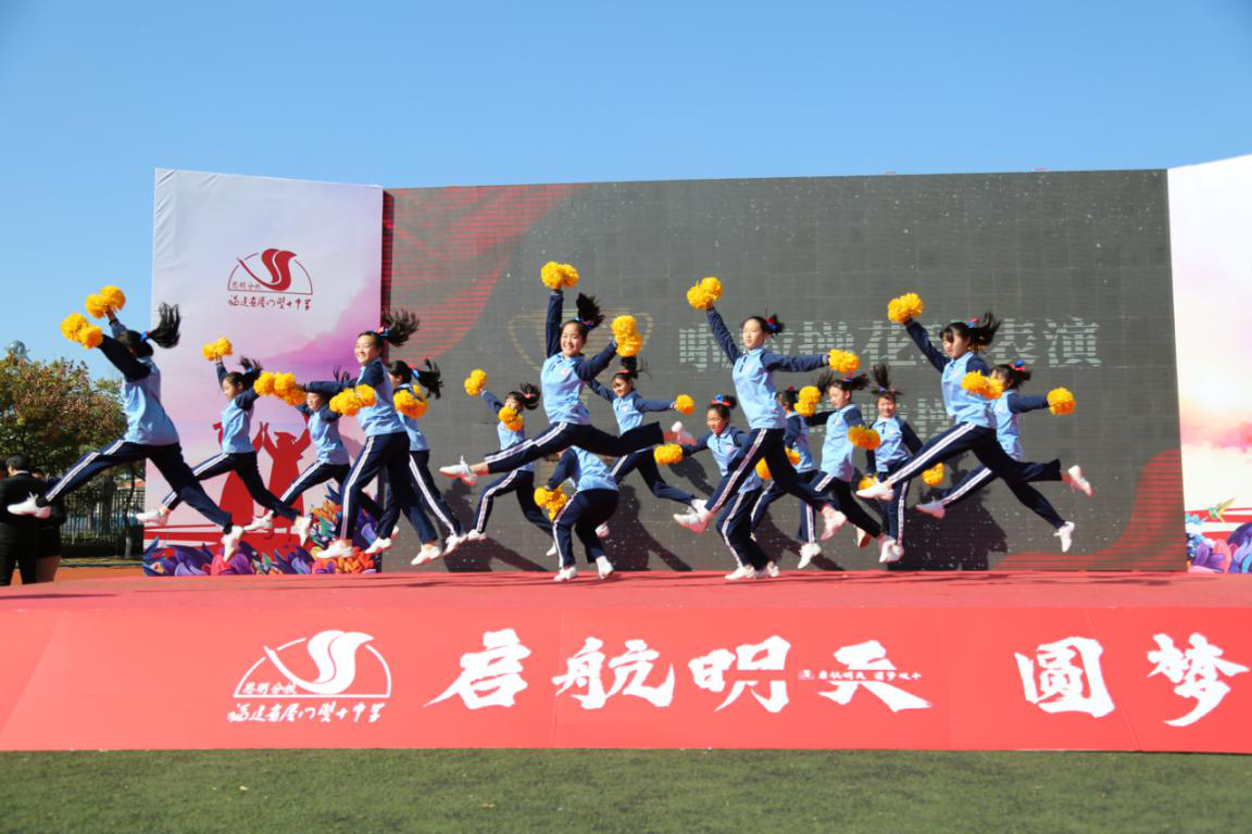 学校啦啦操队热情的花球表演拉开了演出序幕