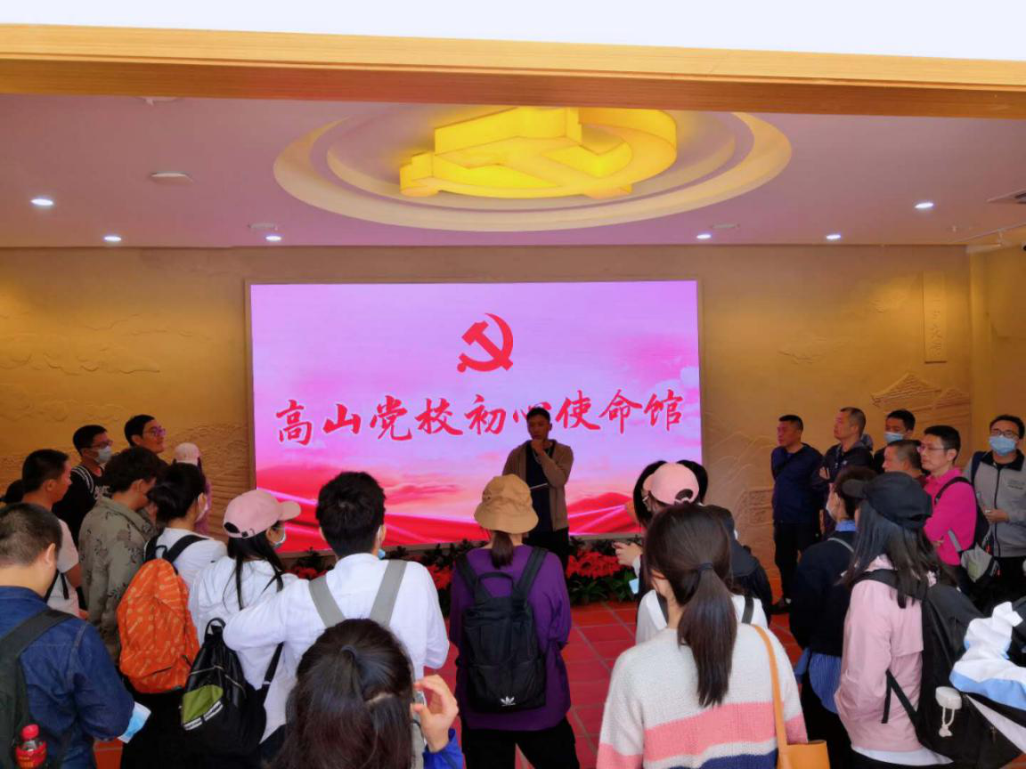 军营村位于莲花镇境内,与安溪县大坪乡接壤,平均海拔达900多米,素有“社会主义军营”的美称。秋游队伍首先到达军营村高山党校“初心使命馆”,随着习近平总书记当年调研指导的足迹,参观学习了丰富的馆藏资料,深切体会了习总书记对扶贫工作所做出的前瞻指导。接下来,秋游队伍在美丽的高山小径中,徒步穿越村庄,欣赏了村内外的自然风光,最终到达高山小学教学点,通过视频学习了解了军营村改革开放以来的沧桑巨变。午休片刻后,队伍前往军营村著名景点七彩池摄影留念,集合返程。