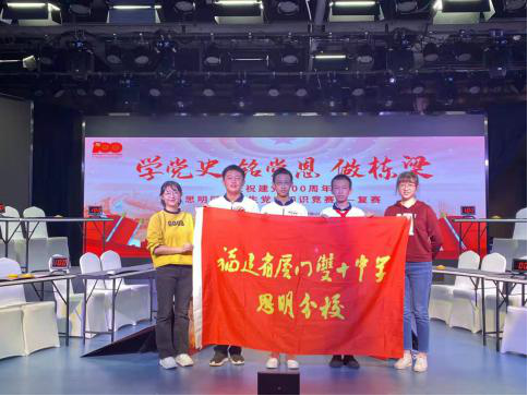 经过初赛的激烈选拔,最终双十中学思明分校冲入决赛。在11月20日于思明区文化馆举行的决赛中,三名同学以出色的发挥和丰富的党史知识,最终取得了第二名好成绩,并且王浏阳同学还获得了最佳个人风采奖。