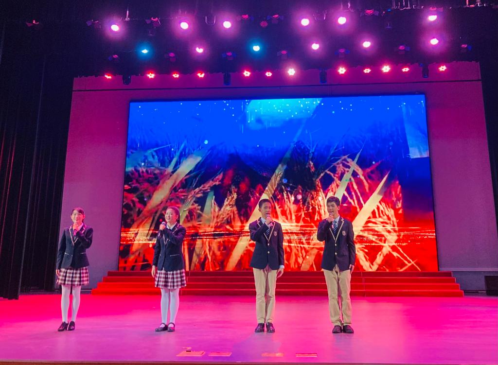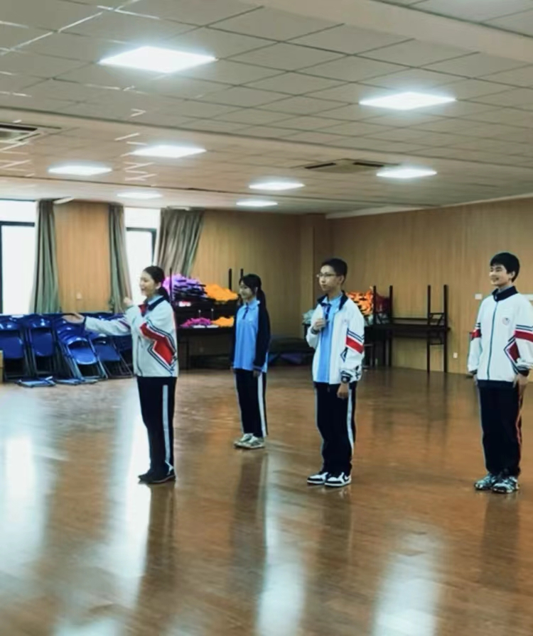 朗诵队的同学们抽到的决赛篇目是李广田先生的《地之子》,这是一首短诗,如何表现李广田先生对土地深沉的爱成为了这几个十几岁孩子面前的大难题。同学们积极利用课余时间投入紧张而有序的排练中,仔细研读每一个句子,雕琢每一个肢体语言,在一次次排练中逐渐把握作品内涵,最终在决赛场上稳定发挥,收获了优异的成绩。