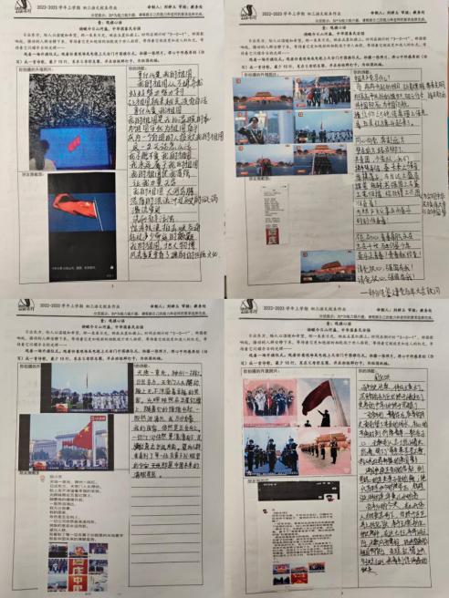 在“双减”政策下,我校初三语文组在国庆作业中展开了实践作业的有效尝试。当伟大节日与语文作业邂逅,那便迸发出让学生爱上作业的火花。我们坚决摒弃机械的题海作业和冗长的耗时作业,在浓浓的节日氛围中,我们尝试让学生带着别样的情感“愿参与”,借助已知经验“能参与”,通过各种感官或行为“真参与”,使学生不仅获得知识技能,而且能产生独特的情感体验,形成自身的学科素养。