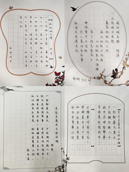 古有爱国青年振臂高呼,救国于水火;今有我双思少年风华正茂,爱国当己任。汇聚与传递爱党爱国精神力量,学习传统诗词文化,体会历代文人们的爱国精神,营造墨香满园的校园文化氛围,我校九年级将开展以“天下国家·爱国诗词”为主题的硬笔书法大赛活动。
