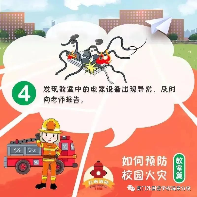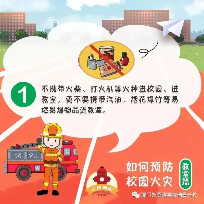11月9日是全国“119”消防宣传日,火灾往往是在突然的情况下发生的,谁都有可能遇上,火灾中的求生知识,我们每个人都得掌握,只要冷静机智运用火场自救与逃生知识,就有极大可能拯救自己。因此,厦门外国语学校瑞景分校进行了“关注消防,生命至上”主题系列宣传教育活动。 掌握多一些火场自救的要诀,困境中也就能获得第二次生命。