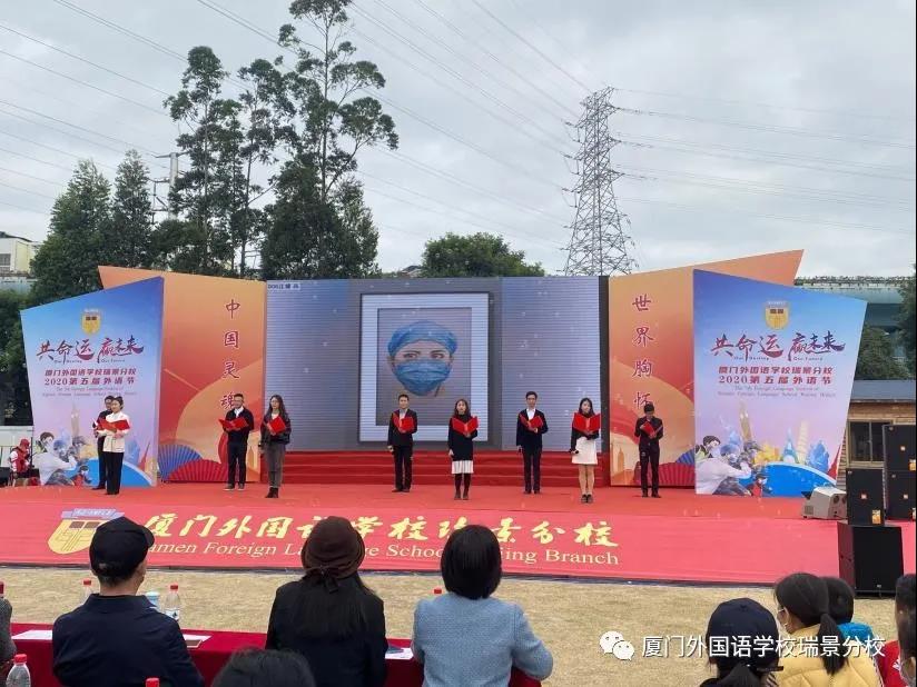 随着全球化趋势的不断加深,国际社会日益成为一个你中有我,我中有你的“命运共同体”,唯有互相守望,才能在未来互利共赢。厦外瑞景分校秉承“进德修业”的校训,致力于培养具有“中国灵魂,世界胸怀”的高素质国际性复合型预备人才,为促进学生对全球抗击新冠疫情现状的了解,启迪学生思考世界未来的格局,激发学生爱国之情和世界胸怀,厦外瑞景分校于12月5日在操场隆重举行“共命运,赢未来”(Our Destiny Our Future)第五届外语节汇报演出和国际抗疫主题展馆嘉年华活动。莅临本次活动的领导和嘉宾有原思明区人大常委会副主任肖纯华老师、思明区文元干休所(我校关工委辅导员)刘洪德老师、思明区文园干休所朱亚琴老师、厦门外国语学校副书记叶穗灿老师、厦门外国语学校副校长周毅老师、瑞景小学校长邹晓东老师、厦门滨城中学校长苏燕渝老师、莲前小学副校长洪谊雄老师、前埔南区小学副校长高芳老师、前埔北区小学周培芬老师、厦门外国语学校徐士永老师、陈宇老师、江彦靓老师。本次活动还诚邀部分家长、以及周边4所小学的师生参加。